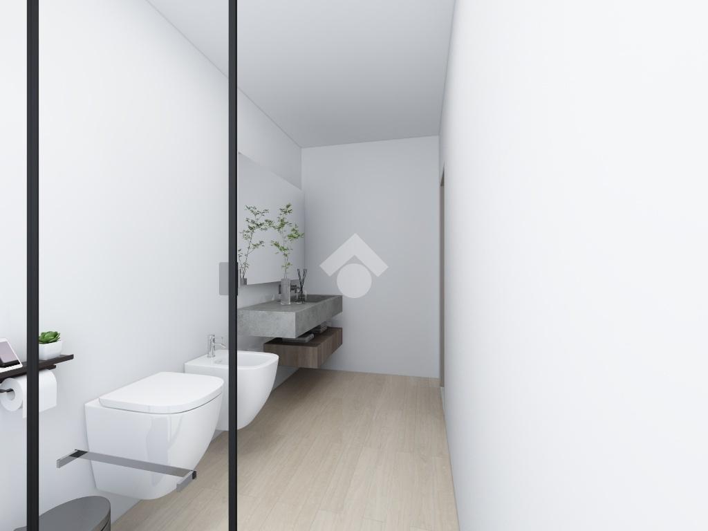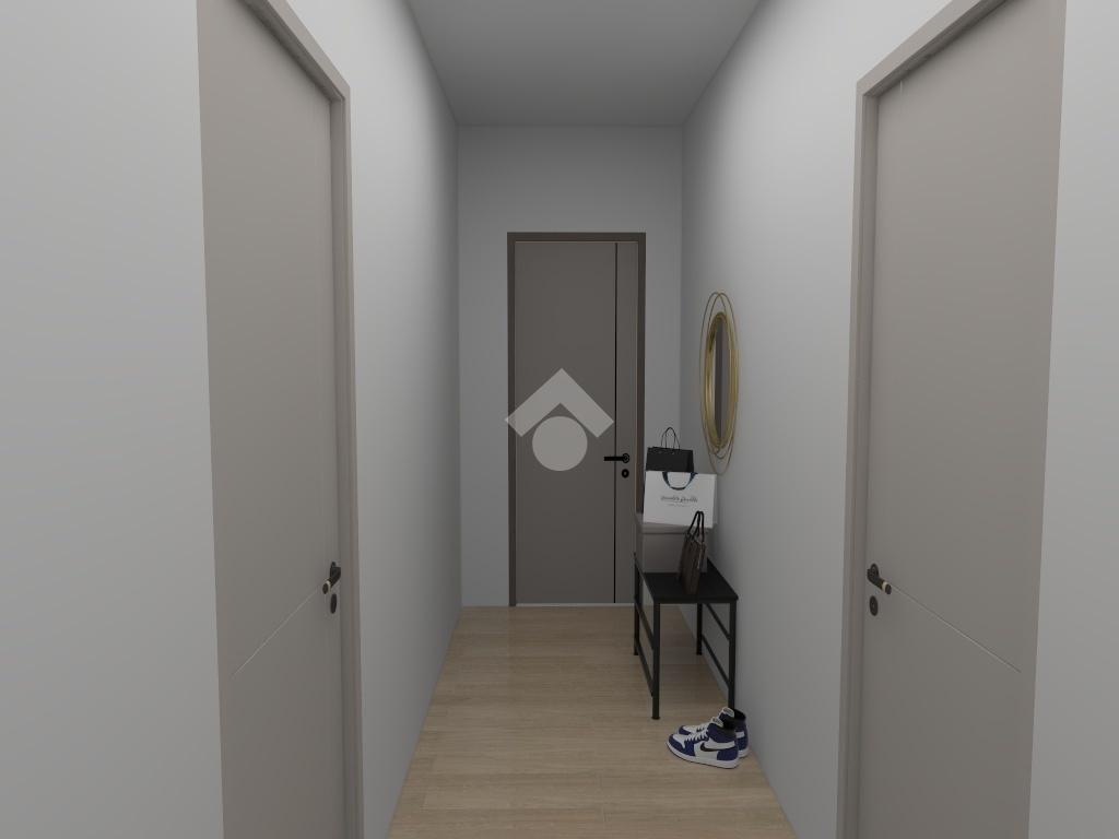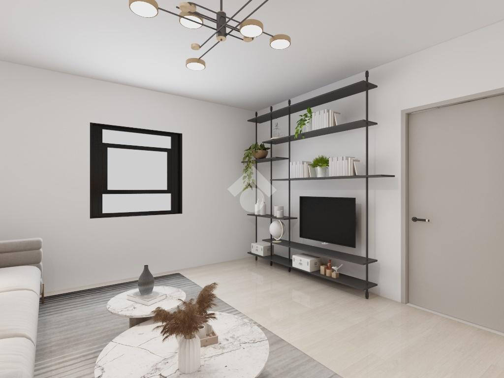 I rendering integrati con le fotografie dell’immobile sono stati realizzati esclusivamente a scopo illustrativo: pur cercando di rispettare il più possibile proporzioni e caratteristiche degli ambienti, hanno l’obiettivo di offrire una possibile visione di come l’appartamento potrebbe apparire a seguito di interventi quali una semplice tinteggiatura, l’inserimento di arredi o la sostituzione dei sanitari in bagno.