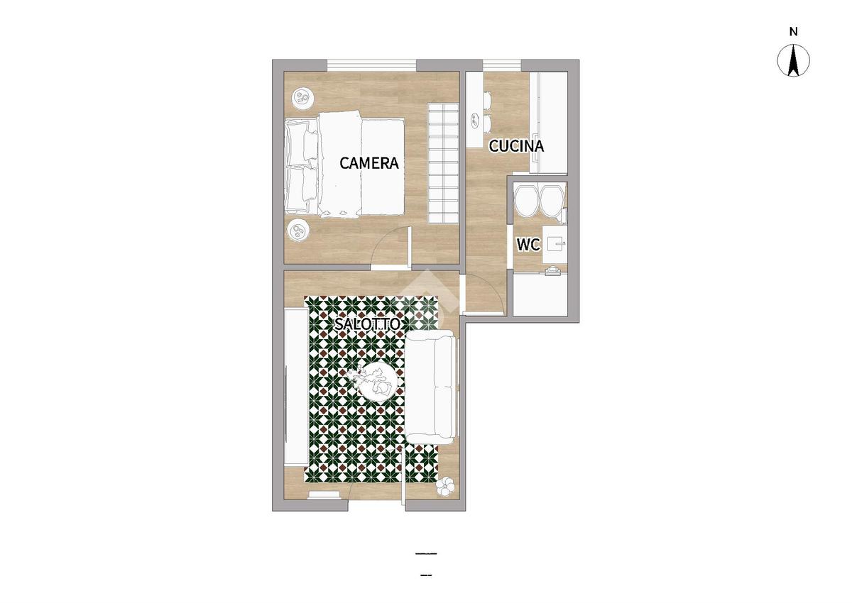 L'IMMOBILE: Posto al piano terra della palazzina, con ingresso indipendente, è caratterizzato dalla presenza di un soggiorno all'entrata e di un angolo cucina. E' presente inoltre una camera da letto matrimoniale, un bagno ed un comodo ripostiglio.