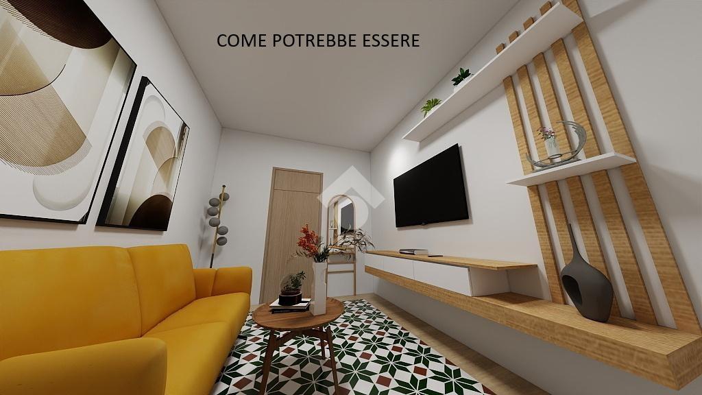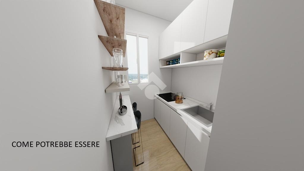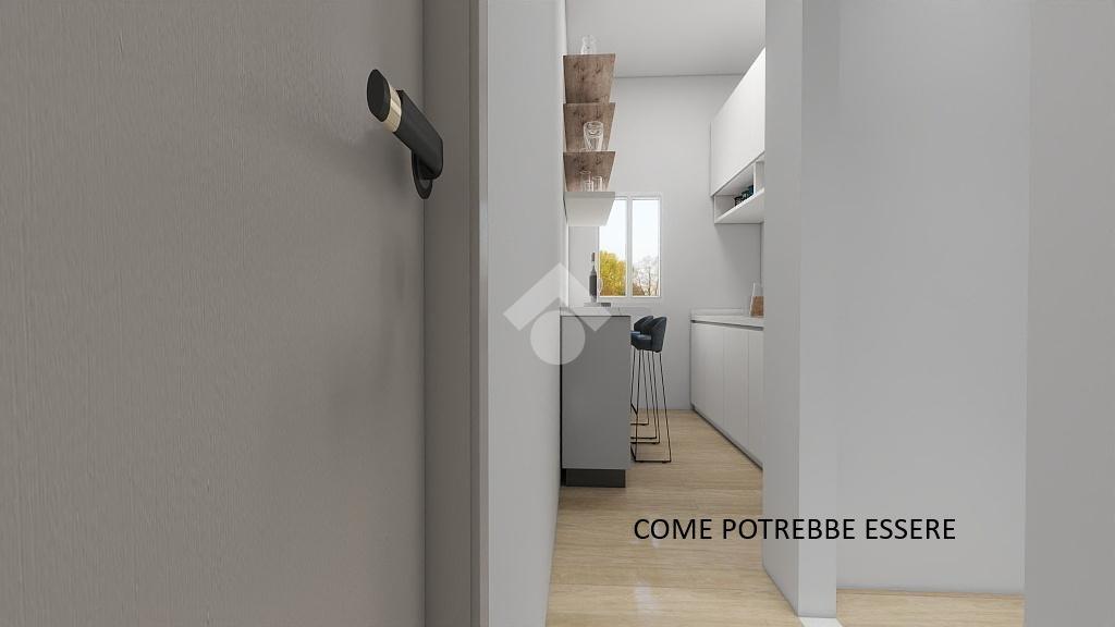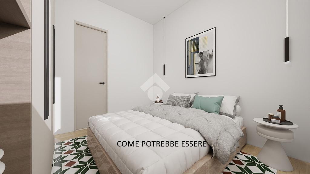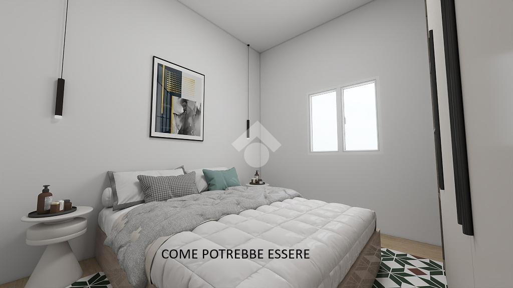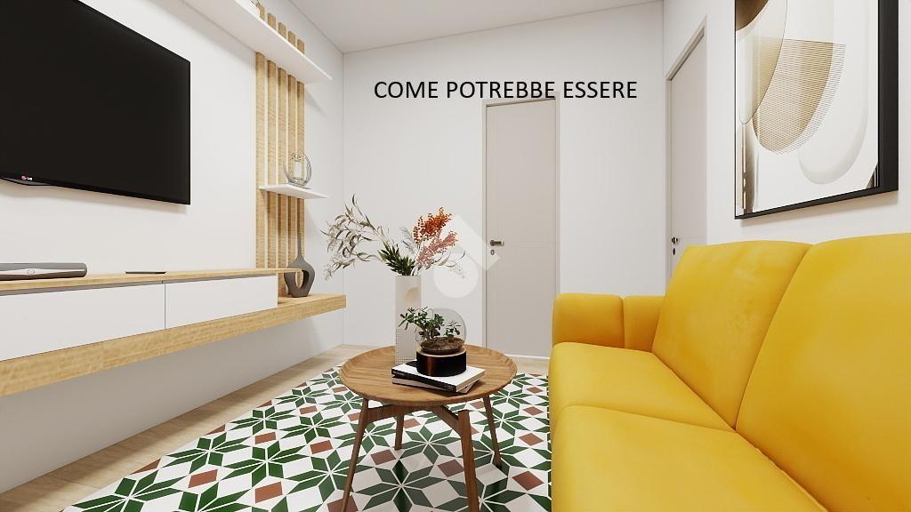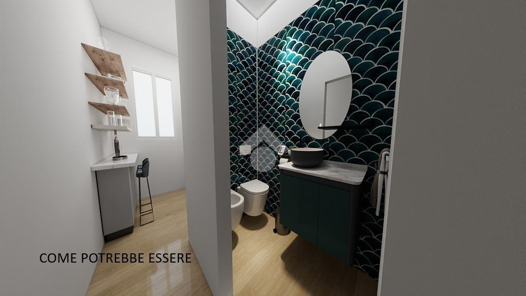 I rendering integrati con le fotografie dell’immobile sono stati realizzati esclusivamente a scopo illustrativo: pur cercando di rispettare il più possibile proporzioni e caratteristiche degli ambienti, hanno l’obiettivo di offrire una possibile visione di come l’appartamento potrebbe apparire a seguito di interventi, quali una semplice tinteggiatura, l’inserimento di arredi o la sostituzione dei sanitari in bagno.