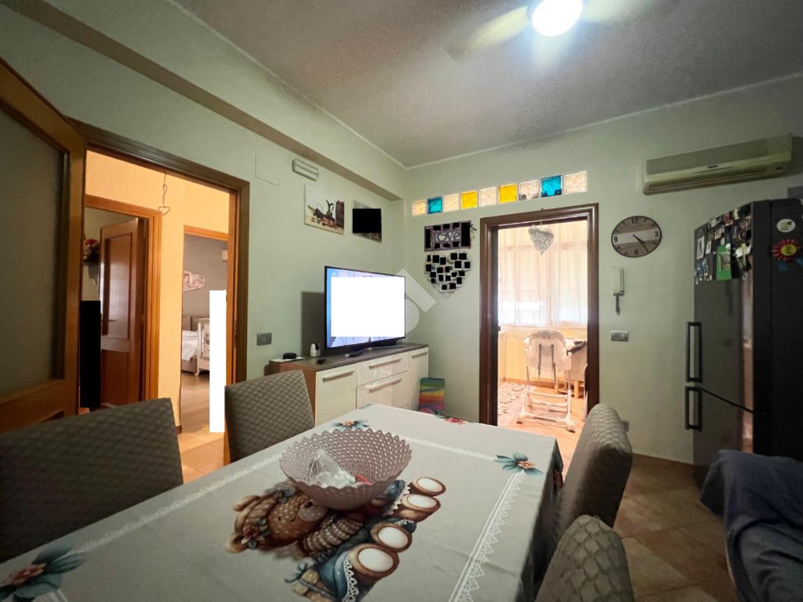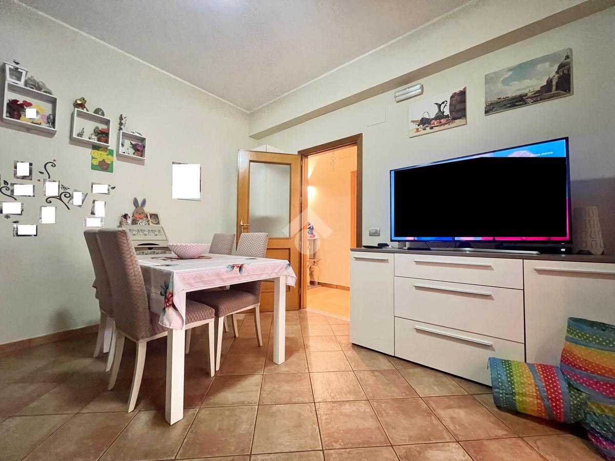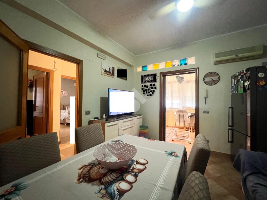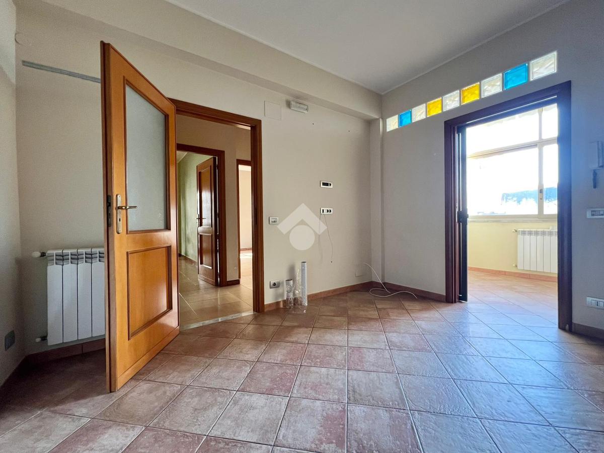 L'ingresso è direttamente sulla zona giorno, caratterizzata da un ampio e luminoso salone con balcone annesso e si completa con la presenza di una cucina soggiorno con verandina.
