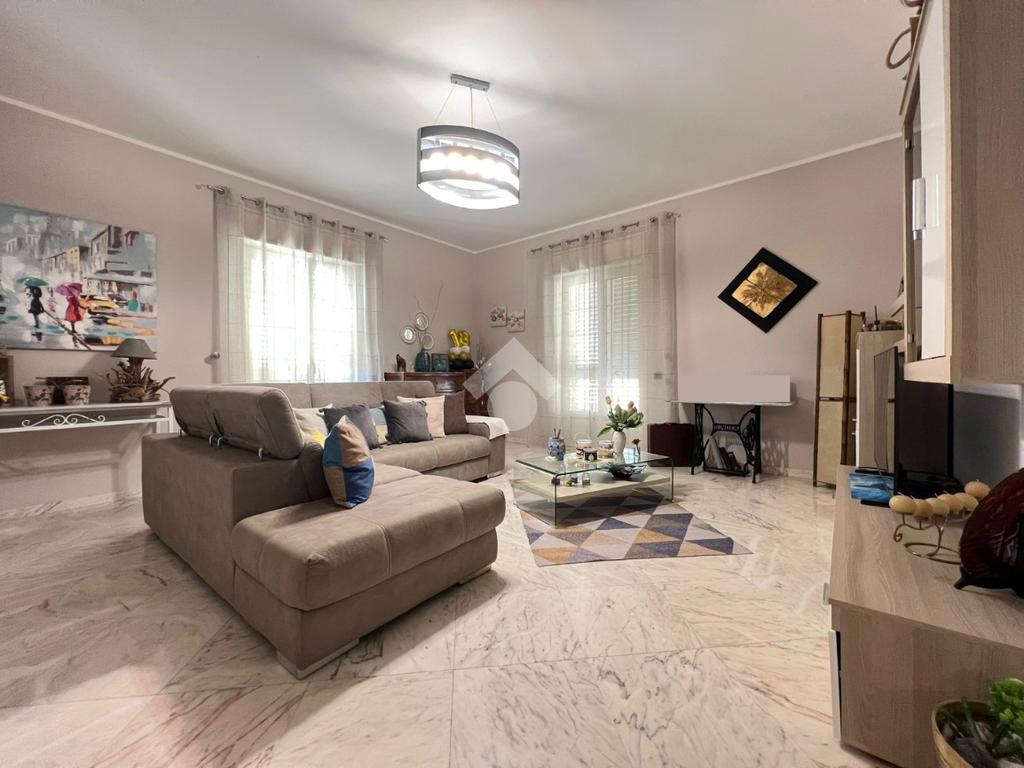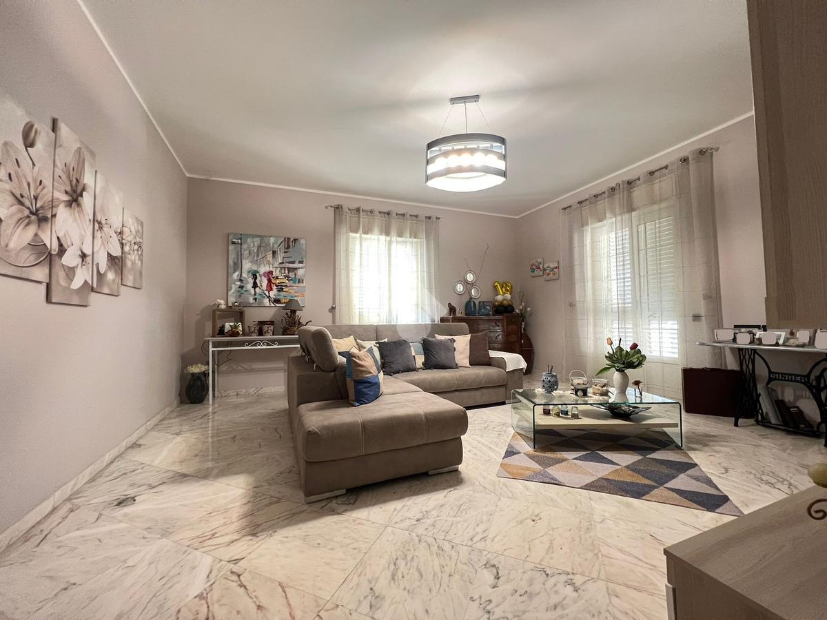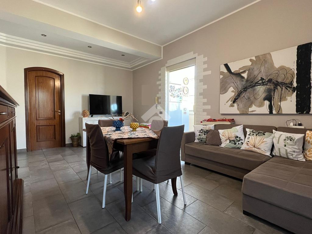 L'ingresso è direttamente su un disimpegno dal quale si accede direttamente all'ampia zona giorno, caratterizzata da una comoda cucina soggiorno ed un luminoso salone annesso. Sono presenti due balconi, di cui uno verandato ed uno annesso al salone.