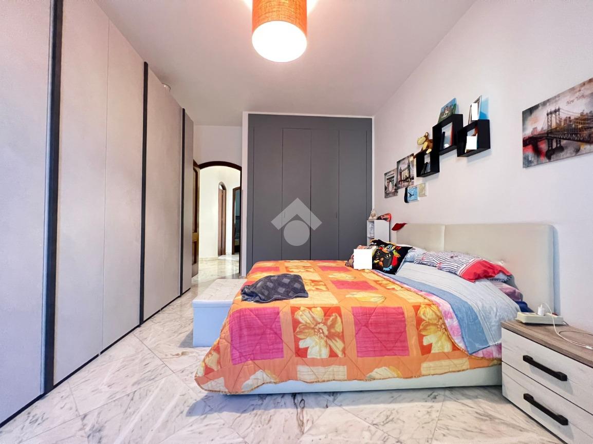 La zona notte presenta, invece, due camere da letto di cui una matrimoniale ed una cameretta con balcone. I bagni sono due di cui uno con box doccia e uno con vasca. E' presente inoltre, anche un ripostiglio.