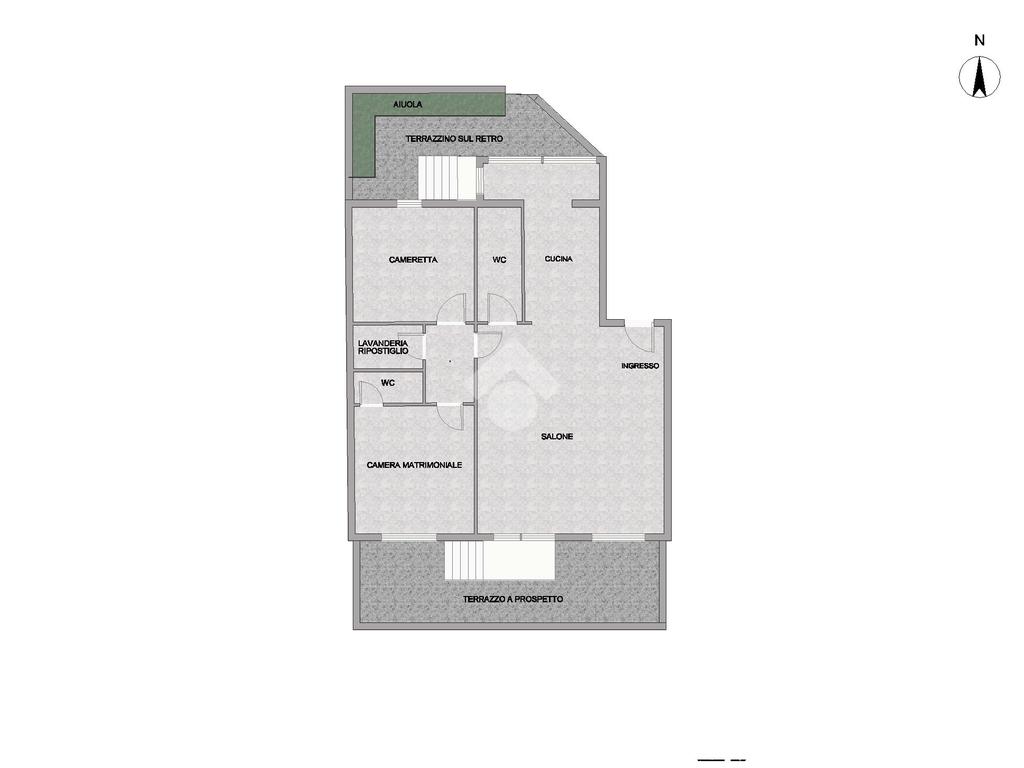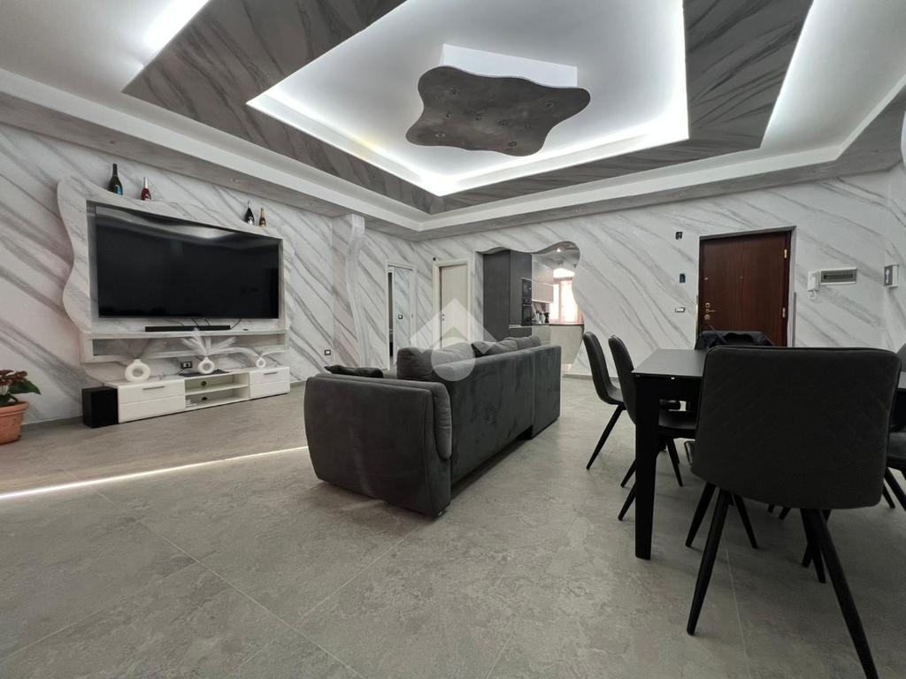 L'IMMOBILE: È posto al piano rialzato dello stabile. Si tratta di un contesto residenziale con posto auto assegnato. L'accesso al condominio avviene dal cancello automatico, direttamente sugli ampi spazi condominiali. L'ingresso all’immobile è direttamente sull’ampia zona living, caratterizzata da un ampio salone, munito di balcone, dal quale si accede al primo ampio terrazzo.