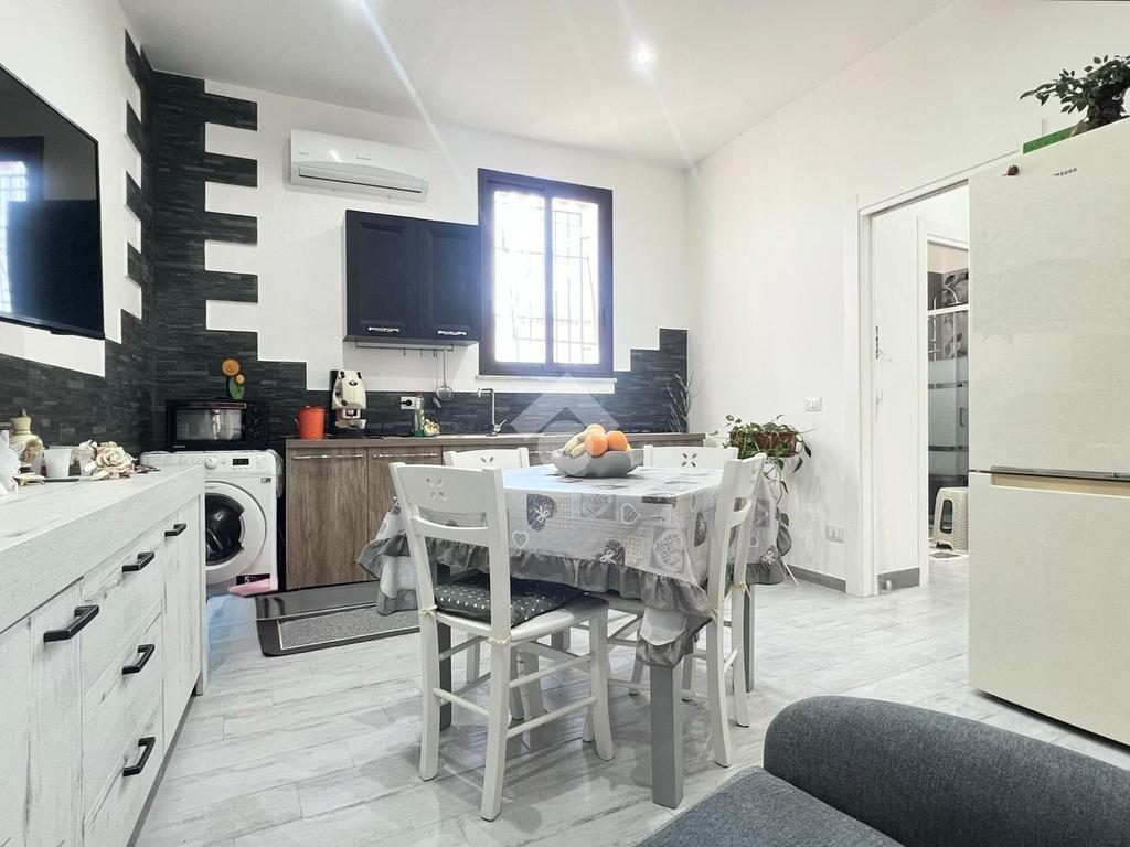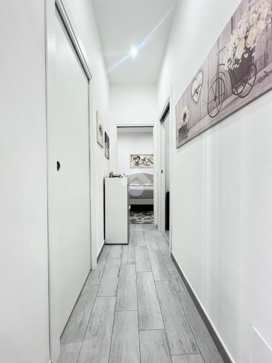 Si presenta in ottime condizioni poiché interamente ristrutturato. Le porte scorrevoli sono in legno laccato bianco, gli infissi in vetrocamera taglio termico, mentre la pavimentazione è in gres porcellanato.